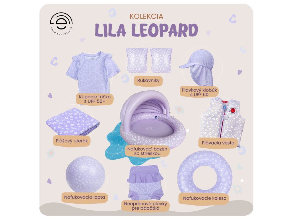 Plavky pre bábätká s UPF 50+ Lila Leopard Vaše detičky si užijú zábavu vo vode naplno! Praktické plienkové plavky pre bábätká od Swim Essentials s ochranou proti slnku UPF 50+ a s nadčasovým leopardím vzorom vo fialovej farbe sú snom každého rodiča. Plavky sú totiž vyrobené z veľmi príjemného materiálu, ktorý dokonale ochráni detskú pokožku pred slnečným žiarením. Oceníte nepriepustný materiál aj premyslený strih Plavky sú dobre umývateľné a nepriepustné pre prípad menšej nehody vo vode. Veľkosť sa dá upravovať podľa toho, ako vaše bábätko rastie. Plavky je možné kombinovať s klobúčikom s rovnakými motívmi a ďalšími výrobkami rovnakej značky. Plienkové plavky sú vhodné do bazéna aj mora Prémiová holandská značka Swim Essentials sa pri všetkých svojich výrobkoch zameriava na vysokú kvalitu, funkčnosť a neopozeraný dizajn. To všetko v sebe spájajú aj tieto plienkové plavky pre bábätká, preto sú vhodné aj do chlórovanej či morskej vody. Stanú sa tak neoddeliteľnou súčasťou vašej výbavy k vode.Dodatočné parametre