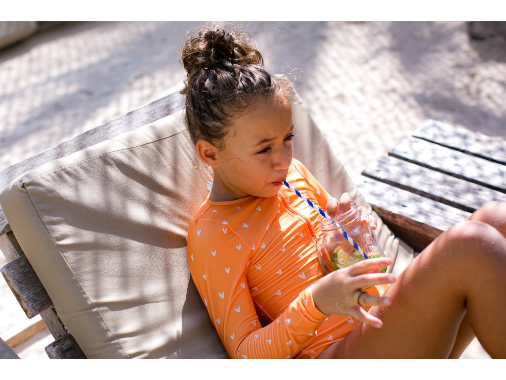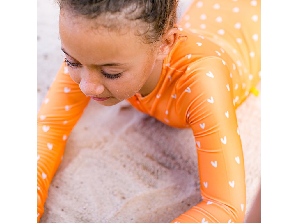 Plavky s dlhým rukávom s UPF 50+ Srdiečka Zábava vo vode aj ochrana proti slniečku! Detské plavky s dlhým rukávom od Swim Essentials s ochranou proti slnku UPF 50+ v oranžovej farbe s bielymi srdiečkami sú snom každého rodiča. Plavky sú totiž vyrobené z pevnej strečovej látky, ktorá dokonale ochráni kožu vášho dieťaťa pred slnečným žiarením. Plavky sa vyrábajú v niekoľkých veľkostiach. ODPORÚČAME KÚPIŤ O ČÍSLO VÄČŠIU VEĽKOSŤ, NEŽ STE ZVYKNUTÍ. Oceníte premyslený strih Plavky zakryjú aj ruky, ktoré sú vždy veľmi exponované a detičky ich majú často spálené. Vám už iba stačí namazať im nohy a tvár. Na prednej strane plaviek je dlhý zips, vďaka ktorému sa dobre obliekajú. Plavky do veľkosti 98/104 majú tiež rozopínanie medzi nohami. Plavky do veľkosti 110/116 majú volániky, väčšie ich nemajú. Dievčenské plavky sú vhodné do bazéna aj mora Prémiová holandská značka Swim Essentials sa zameriava na vysokú kvalitu, funkčnosť a luxusný dizajn svojich výrobkov. To všetko v sebe spájajú aj tieto plavky pre deti s UV filtrom, ktoré sa tak stanú neoddeliteľnou súčasťou vašej výbavy k vode.62/68 - Vek: 0-6 mesiacov - Boky: 45-48cm - Pás: 43-47cm - Hrudník: 45-48cm74/80 - Vek: 6-12 mesiacov- Boky: 47-50cm - Pás: 45-48cm - Hrudník: 48-51cm86/92 - Vek: 1-2 rokov - Boky: 50-53cm - Pás: 47-50cm - Hrudník: 48-51cm98/104 - Vek: 2-4 rokov - Boky: 52-55cm - Pás: 49-52cm - Hrudník: 51-54cm110/116- Vek: 4-6 rokov - Boky: 59-62cm - Pás: 56-59cm - Hrudník: 60-63cm122/128- Vek: 6-8 rokov - Boky: 61-64cm - Pás: 56-59cm - Hrudník: 61-64cm134/140- Vek: 8-10 rokov - Boky: 63-66cm - Pás: 59-62cm - Hrudník: 64-67cm146/152- Vek: 10-12 rokov - Boky: 67-70cm - Pás: 63-67cm - Hrudník: 66-69cmDodatočné parametre