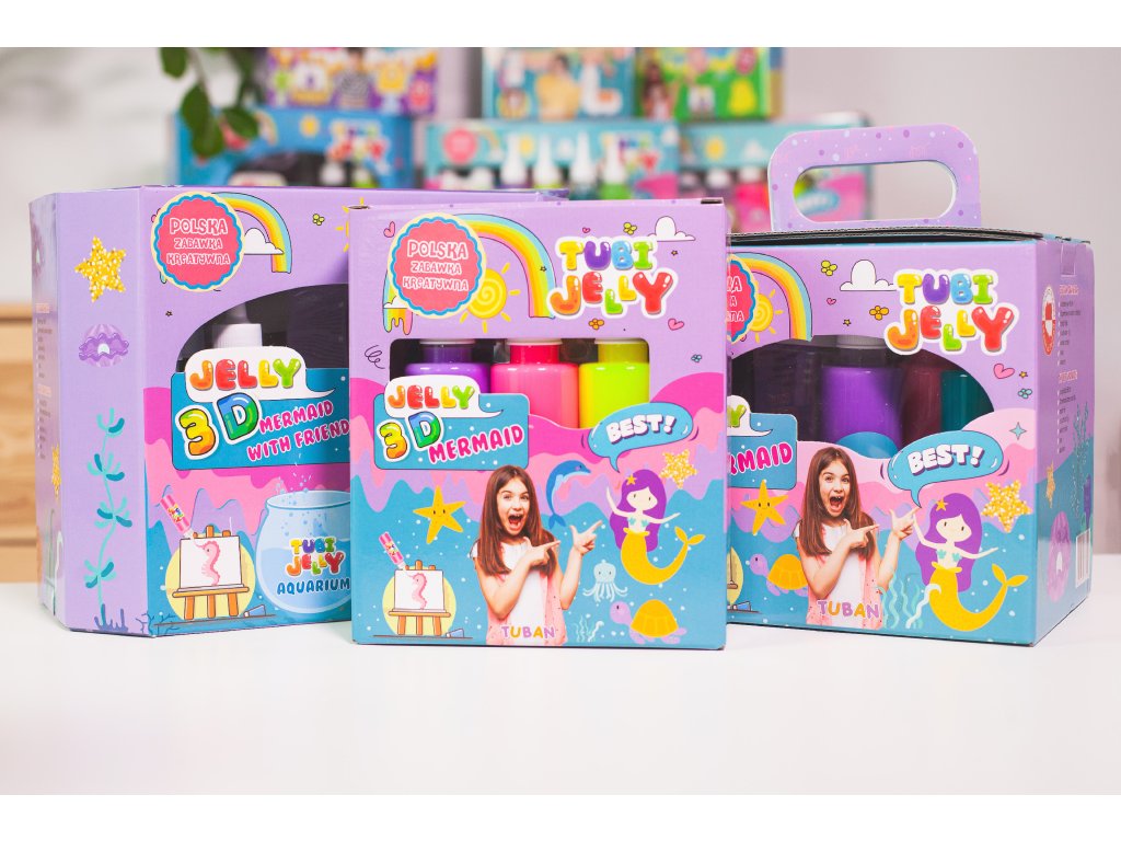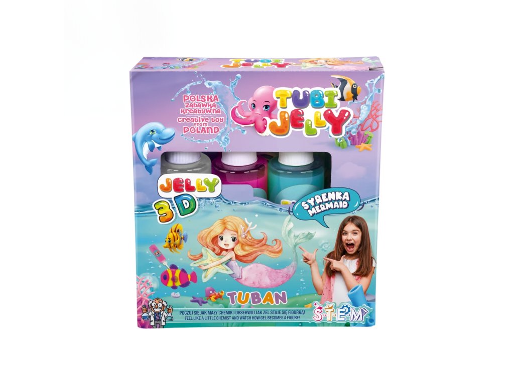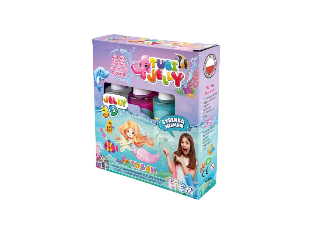 Tubi Jelly Kreatívny set Morská panna Vytvorte si 3D gélové figúrky Tubi Jelly set je jedinečná tvorivá sada na tvorbu trojrozmerných figúrok. Sada obsahuje 3 farebné gély a šablóny na kreslenie s motívmi morských panien. Po vyplnení šablóny gélmi ju ponoríte do rozpusteného aktivátora a vaša postavička sa premení na svoju trojrozmernú verziu. Vďaka priloženej prázdnej fólii si deti môžu nakresliť a vytvoriť čokoľvek im napadne.Sada obsahuje:tekutý gél 150 ml v 3 farbách (biela, ružová, modrá),tematické šablóny,3 x 5 g aktivátora,nádobu na prípravu figúrok.Ocenená hračka roka 2021 V roku 2021 bol produkt Tubi Jelly ocenený titulom Hračka roka v kategórii kreatívne hračky. Vyskúšajte ho aj vy.Všetky produkty značky Tuban sú vyrobené z kvalitných materiálov, sú bezpečné a netoxické, čo znamená, že sa nemusíte obávať o zdravie svojich detí a môžete mať istotu, že ich čakajú len tie najlepšie zážitky.Dodatočné parametre