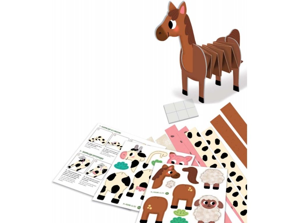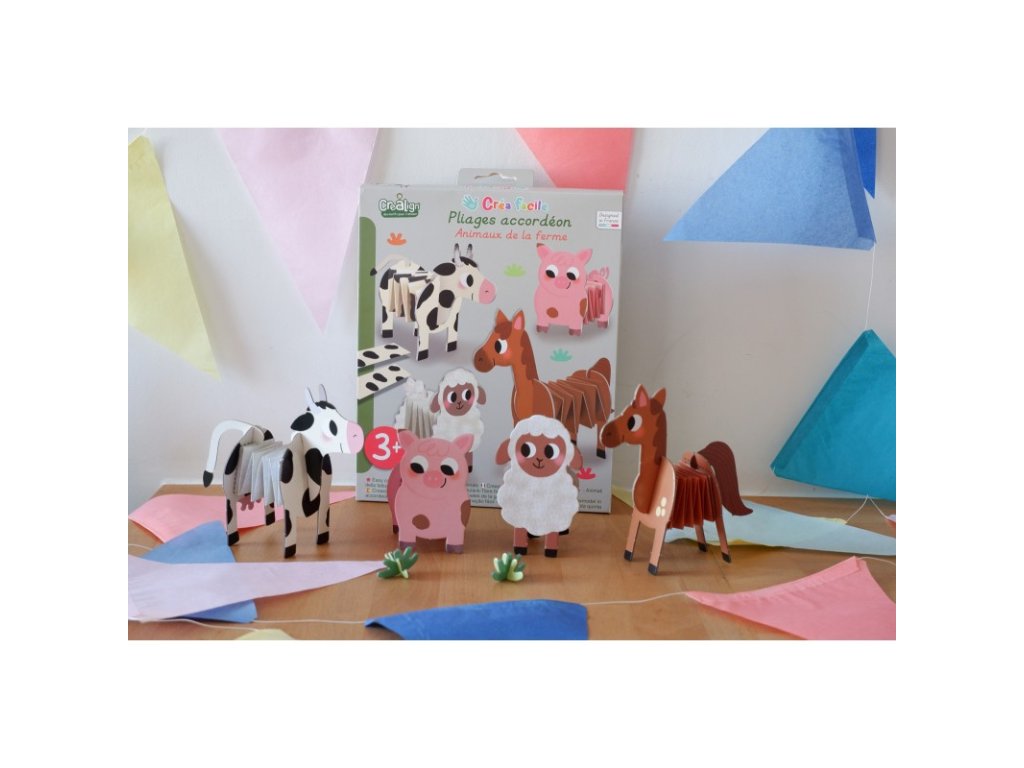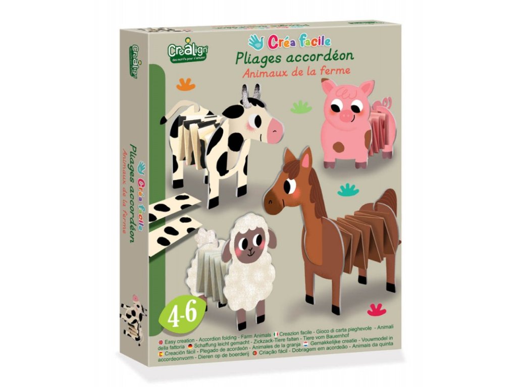 Tvorenie z papiera Zvieratká na farme Vytvor si harmonikové zvieratká z farmy! Jedinečná kreatívna súprava od francúzskej značky Crea Lign naučí deti tvoriť papierové harmoniky. Obsahuje 4 zvieratká z farmy na zostavenie a 8 papierových pásov na vytvorenie harmoník - telíček zvieratiek. Deti si zostavia figúrky zvieratiek, vytvoria im telíčka podľa návodu a po dokončení sa ich vystavia ako dekoráciu alebo sa s nimi môžem hrať. Nožnice ani lepidlo nie sú potrebné!S Crea Lign sa deti učia nové umelecké techniky Tvorenie z papiera podporuje rozvoj jemnej motoriky, predstavivosti aj kreativity. Produkt je veľmi nápaditý a premyslený, rovnako ako všetky ostatné výrobky francúzskej značky Crea Lign. Jej cieľom je vyvíjať kreatívne potreby a hry, ktoré podporujú rozvoj detí a umožňujú každému z nich nájsť to, čo ho baví.Dodatočné parametre