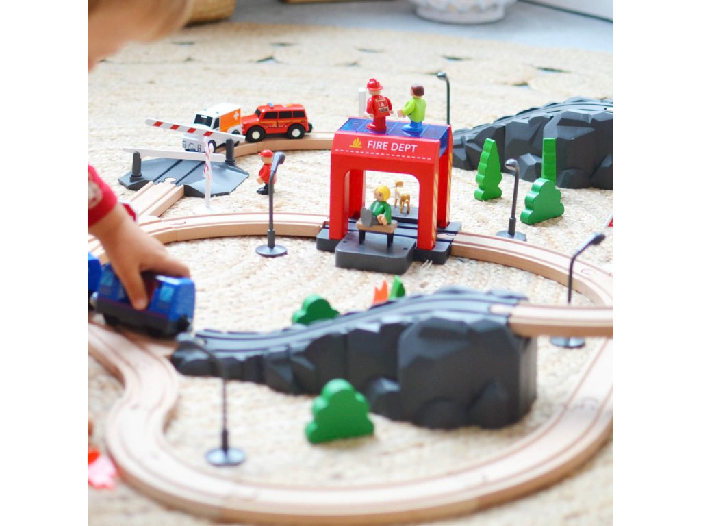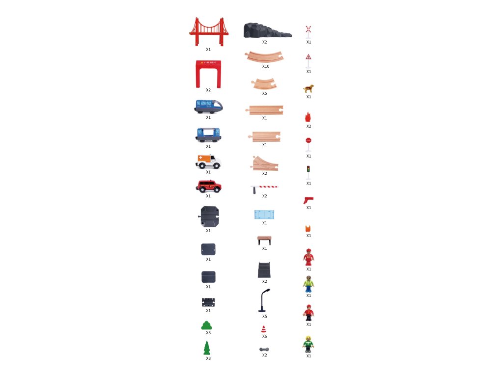 Vláčiková dráha Požiarnici Vláčiková dráha pre malých hasičov Originálna vláčikova dráha s hasičským príslušenstvom obsahuje 70 dielov. Je ideálna pre každého, kto sa zaujíma o vláčiky a záchranné zložky.Sada skvelá na rozprávanie príbehov a rozvíjanie fantázie Súprava hasičského záchranného vlaku obsahuje vlak, ktorý má zvukové efekty a dokážete doň umiestniť figúrky! Súčasťou vlakovej súpravy je aj hasičské auta, hasič, sanitka, dopravné značky, železničné osvetlenie, stromy, kríky a mnoho iného.Dodatočné parametre